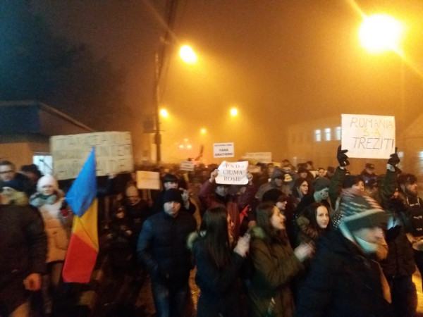 10.000 de constanteni se indreapta catre sediul PSD. Se fluiera si se huiduie mult, se striga „hotii, hotii” aproape continuu. S-au auzit petarde de cateva ori, dar protestul continua pasnic.