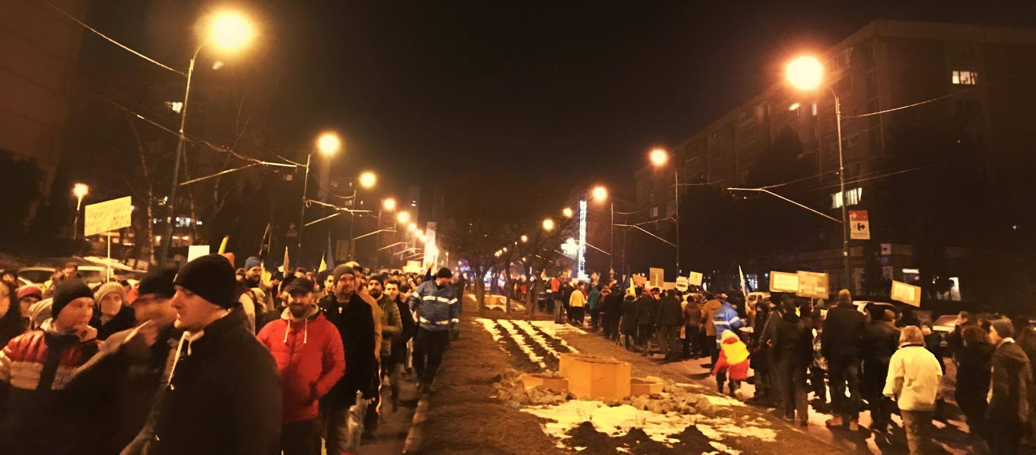 Din nou, sibienii au iesit in strada impotriva OUG 13/2017. Acestia parcurg traseul pana la Biserica de pe Bulevardul Mihai Viteazu si inapoi, pentru a canta imnul national la ora 22:00 in Piata Mare, la fel cum fac protestatarii din toata tara.