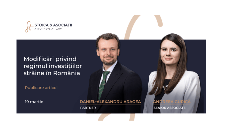 Modificări privind regimul examinării investițiilor în România Articol susținut de STOICA & ASOCIAȚII Modificări privind regimul examinării investițiilor în România