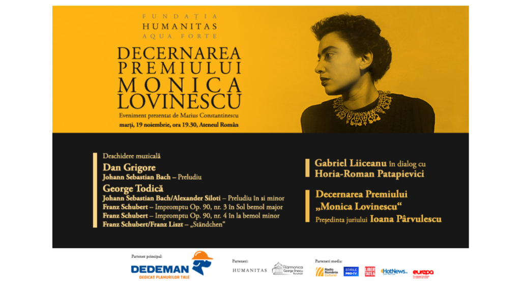 19 noiembrie 2024 – Decernarea Premiului „Monica Lovinescu” la Ateneul Român
