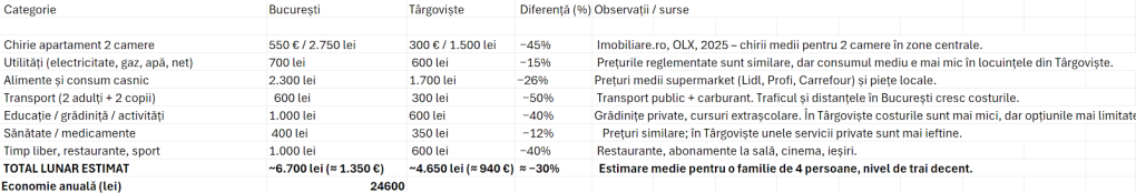 Economia la locuinţă trebuie însă pusă în balanţă cu costul navetei. Dacă naveta zilnică implică mult timp, costuri ridicate de combustibil sau abonamente de tren, atunci avantajul scade. Totuşi, cu opţiuni de lucru hibrid (2-3 zile birou, restul acasă) scenariul devine mult mai atractiv. O reducere netă de ~200 €/lună rămâne realistă pentru multe familii.