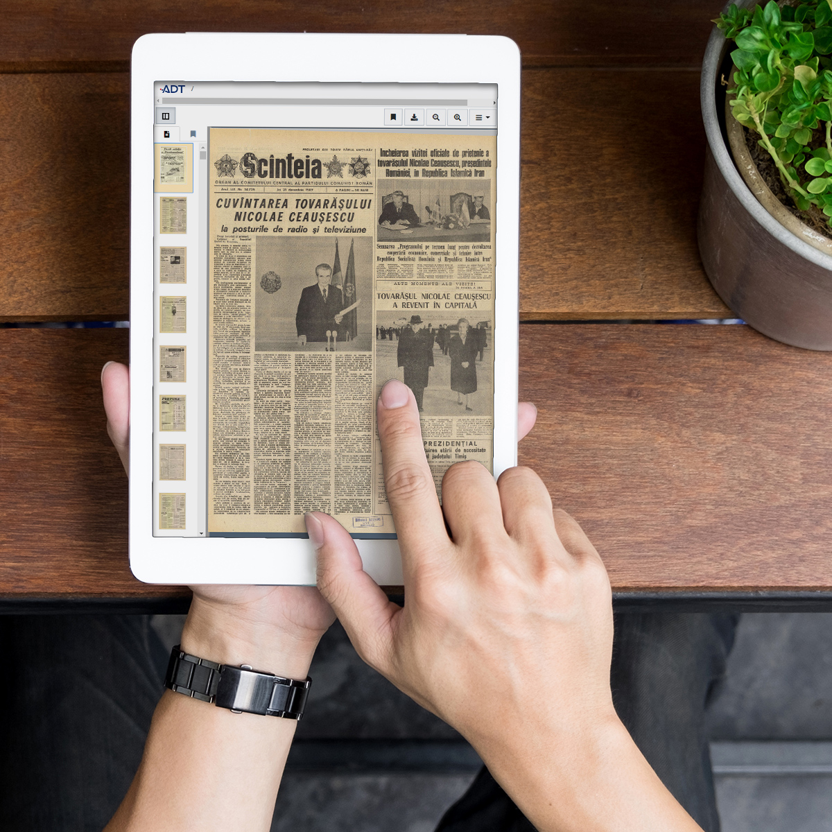 Puteți naviga pe paginile ziarelor ca și cum ați fi un călător în timp, ca și cum ați ține în mână o publicație tipărită. Fiți nostalgici cu numere din Universul, Adevărul sau Scînteia. Mii de titluri sunt disponibile în Toate titlurile, chiar și pe domenii.