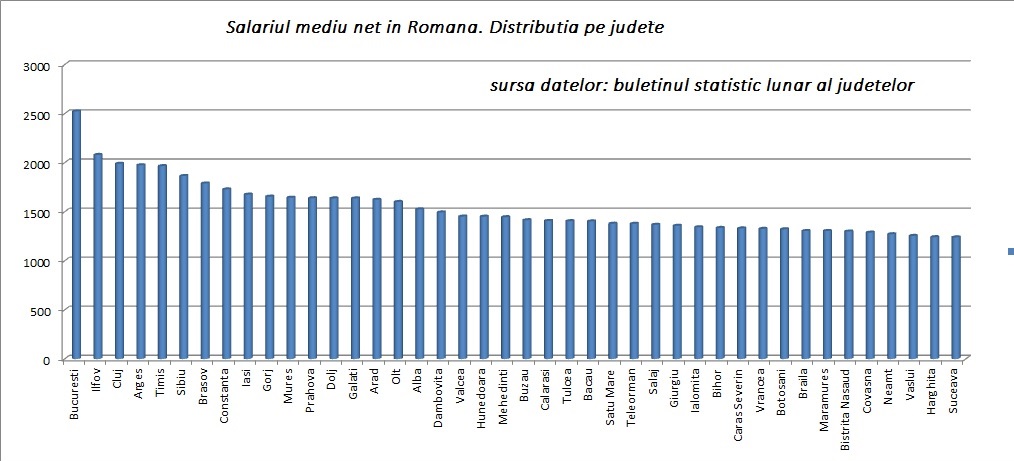 - Cele mai mari salarii sunt in Bucuresti, iar cel mai mici in Suceava