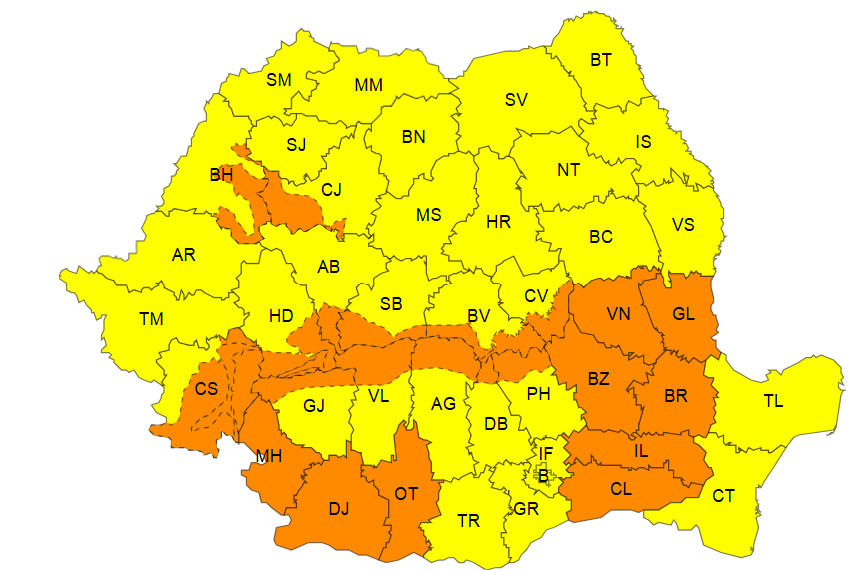 Meteorologii au emis miercuri dimineață alerte cod galben şi cod portocaliu de vânt și viscol în toată țara, valabile pentru ziua de joi. În același timp, meteorologii au prelungit avertizarea de vreme deosebit de rece, brumă şi îngheţ la sol până vineri seară.