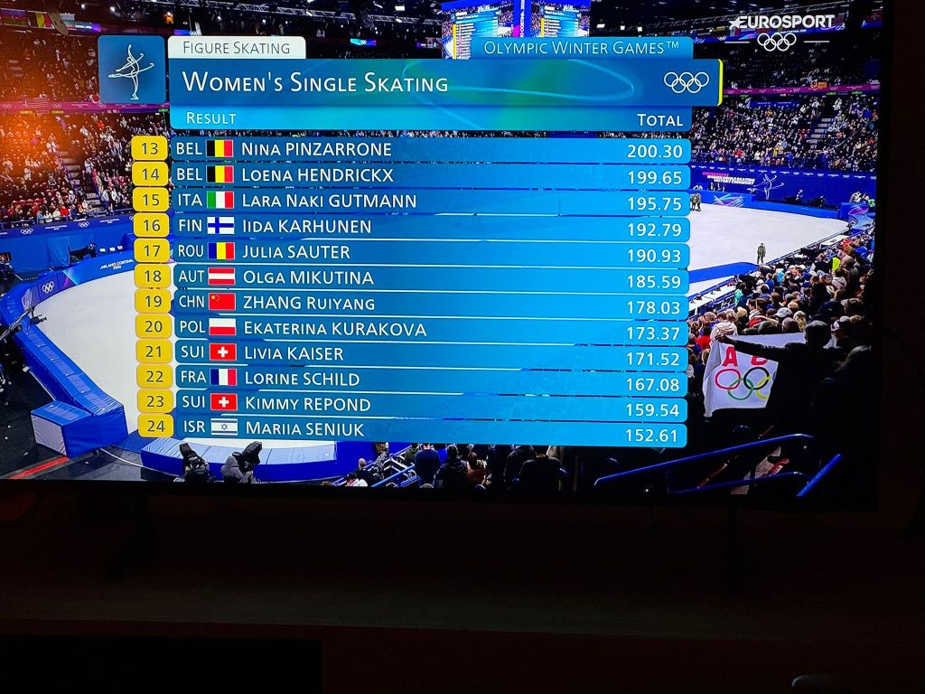 Julia Sauter ocupă poziția a unsprezecea după ce s-a încheiat și a treia grupă valorică. Urmează cele mai bune șase patinatoare, care nu se vor putea clasa sub Julia Sauter, astfel că ea va ocupa la finalul concursului poziția a 17-a, anunță GSP. Va fi cea mai bună clasare la Jocurile Olimpice a unei patinatoare din România în concursul feminin.