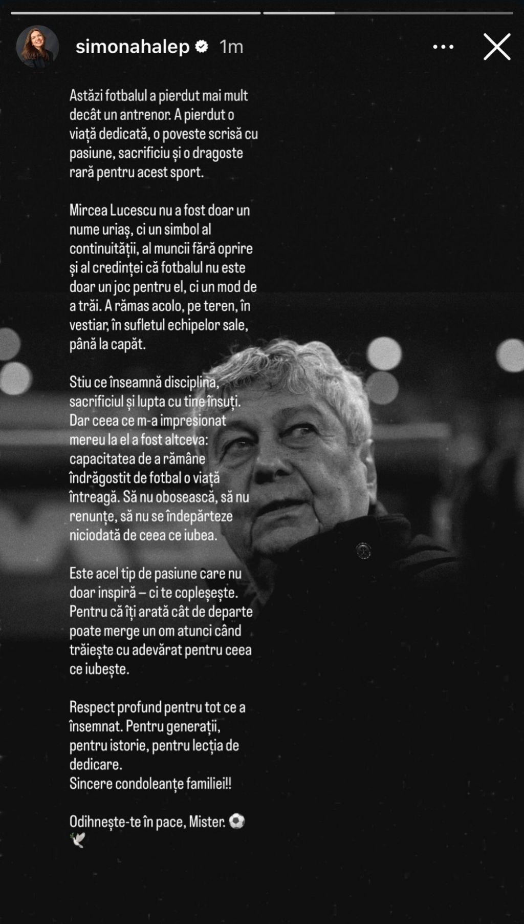 Simona Halep, mesaj emoționat după moartea lui Mircea Lucescu: „A rămas acolo, pe teren, în vestiar, în sufletul echipelor sale, până la capăt” Actualitate Ieri Simona Halep, mesaj emoționat după moartea lui Mircea Lucescu: „A rămas acolo, pe teren, în vestiar, în sufletul echipelor sale, până la capăt”