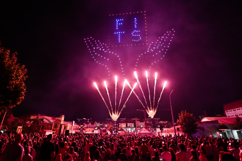 Cel de-al doilea eveniment special care a închis FITS 2024 a fost spectacolul de drone, combinat cu cel de artificii eco și muzică, din Piața Teatrului. Față de anul trecut, show-ul de anul acesta a durat mai mult, circa 15 minute, și a implicat 280 de drone luminoase care au făcut un adevărat spectacol pe cerul Sibiului, sub privirile emoționate ale miilor de spectatori adunați în centrul orașului.