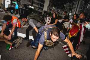 Câteva secunde mai târziu, s-a auzit o bubuitură puternică, asemănătoare unei împușcături, iar Kirk a fost văzut ducându-și pentru o clipă mâna la gât înainte de a cădea de pe scaun, în timp ce participanții la eveniment au început să fugă.