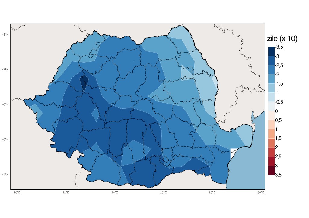 - Sunt tot mai evidente schimbările sezoniere ce indică ierni mai umede și veri mai uscate, iar aceste tendințe se vor intensifica, cea mai îngrijorătoare proiecție fiind că vor scădea cu 20% precipitațiile pe timp de vară, în zonele agricole cheie.