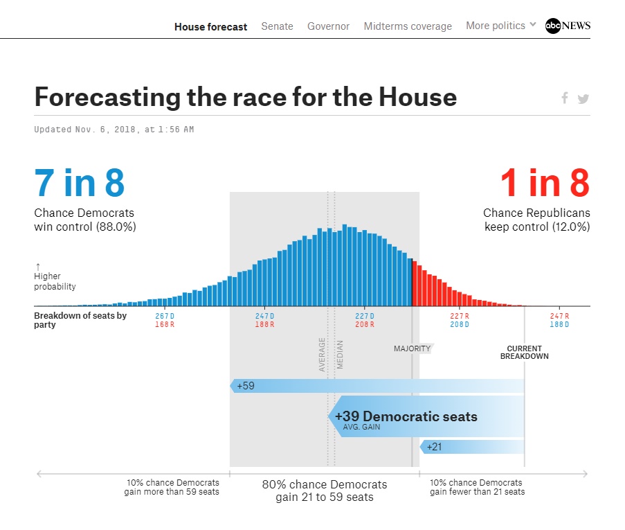 Toate cele 435 de locuri din Camera Reprezentanților sunt în joc. Republicanii dispun în prezent de o majoritate confortabilă (236-193, cu șase locuri vacante). Pentru a prelua controlul asupra camerei inferioare a Congresului american, democrații trebuie să câștige 23 de locuri suplimentare, iar victoria le este la îndemână, chiar dacă circa 30 de scrutine sunt foarte strânse, potrivit sondajelor. Noii aleși își vor începe mandatul de doi ani de la începutul lui ianuarie 2019.