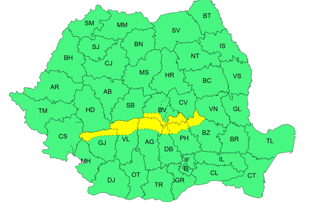 De asemenea, ANM a emis un cod galben de ploi puternice valabil între 27 noiembrie, ora 10 – 28 noiembrie, ora 10. Vizate sunt zona montană a județelor Gorj, Vâlcea, Argeș, Dâmbovița, Prahova, Buzău și Brașov, unde va ploua însemnat cantitativ și se vor acumula 25…30 l/mp și izolat de peste 40 l/mp.