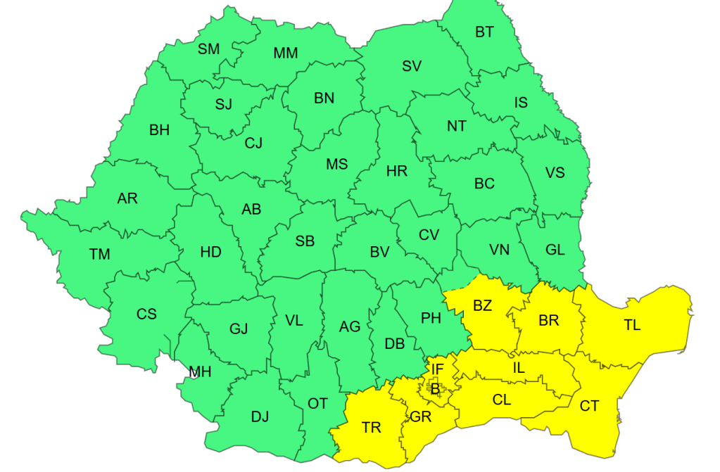 ANM a emis un cod galben, valabil în intervalul 6 decembrie, ora 10 – 6 decembrie, ora 20. Vizate sunt mai multe județe din Dobrogea, sudul, centrul și estul Munteniei. Aici, vânt va bate cu viteze de 50…65 km/h.