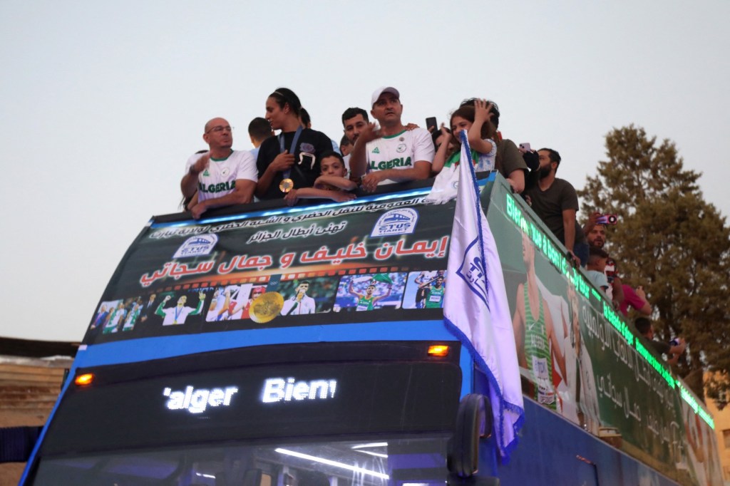 Înghesuiți încă de dimineață în jurul sediului wilaya (prefectura) din Tiaret, o regiune rurală semi-aridă, suporterii au explodat de bucurie când campioana olimpică a apărut la lăsarea serii într-un autobuz cu etaj escortat de vehicule ale jandarmeriei.