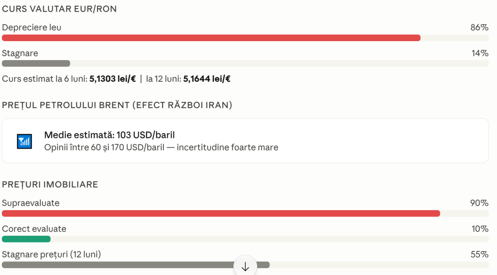 Apartamentele sunt considerate prea scumpe. 9 din 10 analiști cred că prețurile imobiliare sunt supraevaluate — adică nu reflectă valoarea reală. Jumătate estimează totuși că prețurile vor rămâne la același nivel în următorul an.