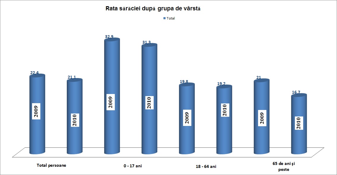 Din punct de vedere al ratei saraciei, Romania (cu 22,4%) se plasa in grupul statelor relativ sarace cu valori peste media Uniunii Europene, cum ar fi: Letonia (25,7%), Bulgaria (21,8%), Lituania (20,6%), Grecia si Estonia (19,7% fiecare). O rata de saracie mai mica se inregistreaza in unele state precum Cehia (8,6%), Slovacia (11,0%), Olanda (11,1%), Slovenia (11,3%), Austria (12,0%).