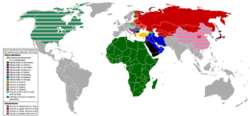 Teritoriile canonice ale Bisericilor Ortodoxe autocefale. Photo: orthodoxwiki.org.