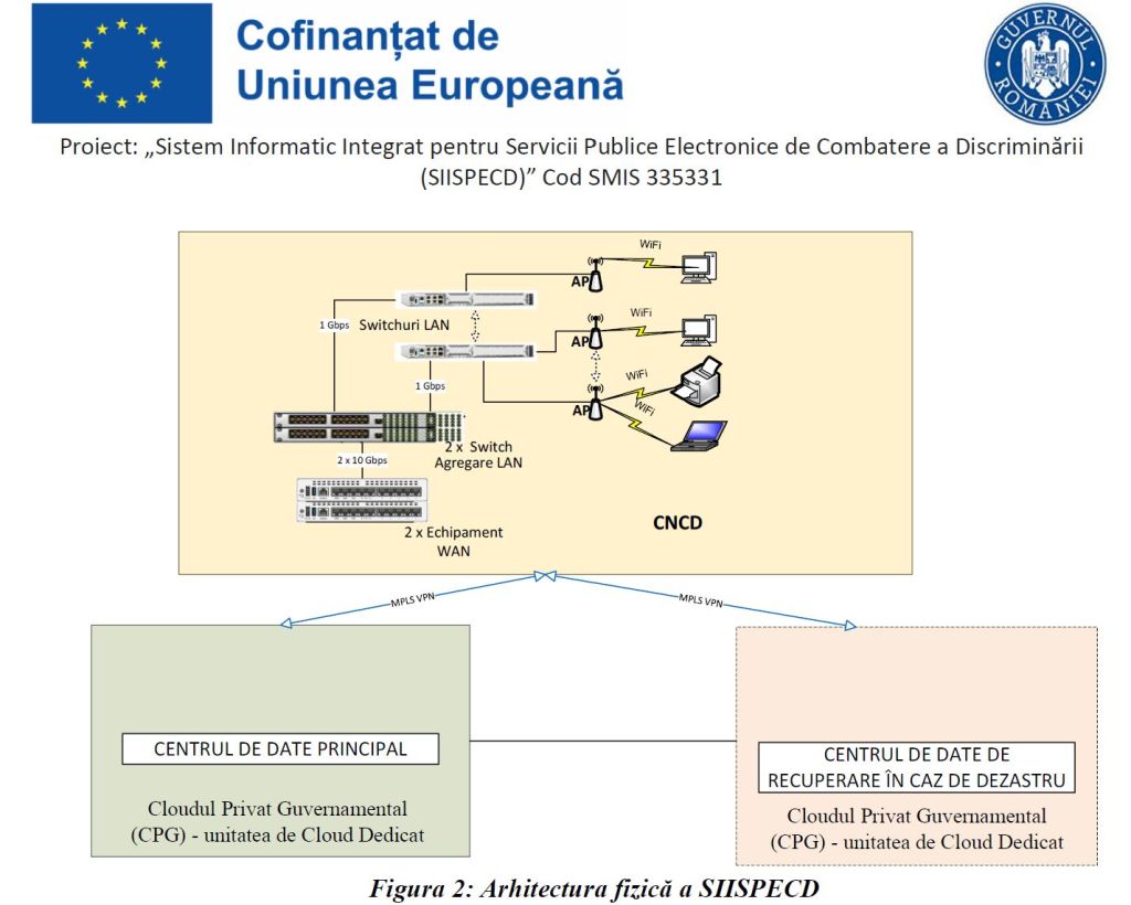 Sistemul Informatic Integrat pentru Servicii Publice de Combatere a discriminării (SIISPECD) se va implementa în Cloudul Privat Guvernamental (CPG), unitatea de Cloud Dedicat bazată pe tehnologia Azure Hub Stack și va fi dezvoltat pe baza componentelor software solicitate în prezenta licitație.