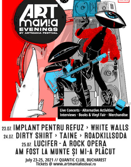 Cum nimic nu poate concura cu apropierea şi cu sentimentul de conexiune umană pe care îl construieşte muzica live, în weekend-ul 23 – 25 iulie 2021, fanii muzicii rock sunt invitaţi să se bucure de o atmosferă de festival, de activităţi alternative şi de energia concertelor oferite de unele dintre cele mai cunoscute trupe româneşti în cadrul „ARTmania Evenings” powered by ARTmania Festival.