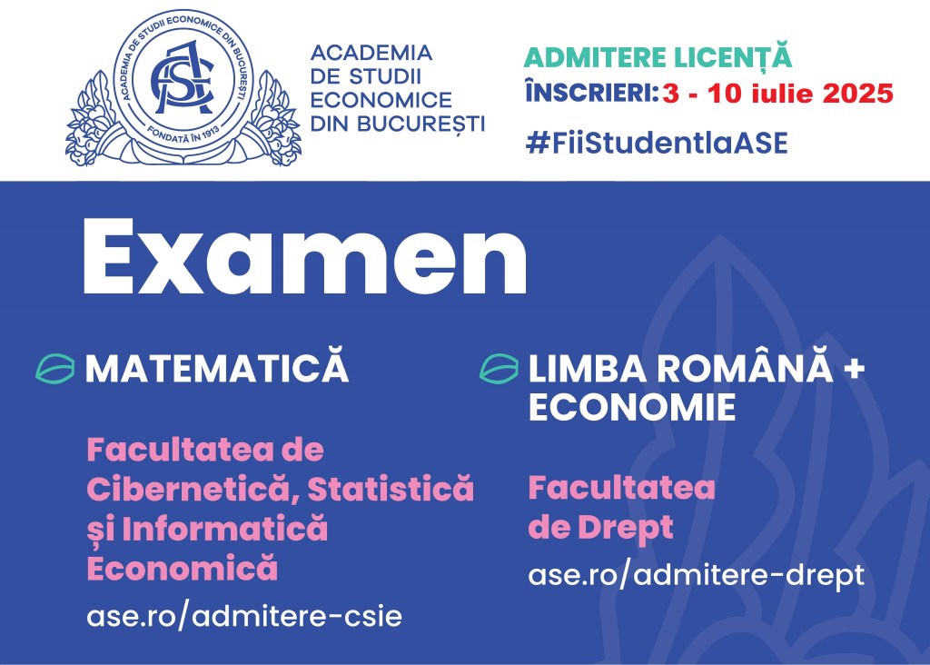 ASE urează succes la examenul de bacalaureat tuturor absolvenților de liceu din acest an și își așteaptă cu drag candidații la concursul de admitere din iulie 2025!