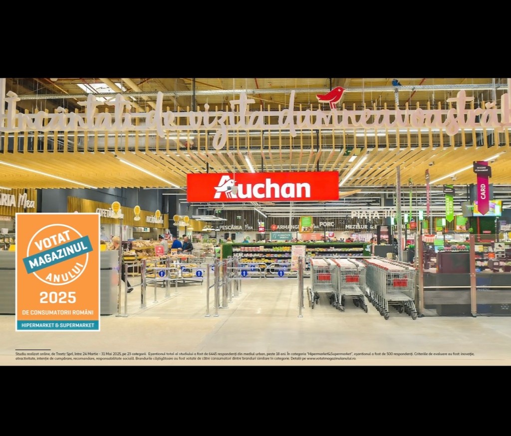 Premiul „Votat Magazinul Anului 2025” obținut de Auchan România în cadrul cele mai noi categorii introduse în competiție reprezintă o validare a experienței pe care retailerul o oferă clienților: o combinație între prețuri accesibile, gamă variată, produse responsabile și o strategie omnicanal bine calibrată. Această recunoaștere se bazează pe rezultatele unui studiu național, derulat între 24 martie – 31 mai 2025, pe un eșantion de 6.445 consumatori români din mediul urban, realizat de compania de cercetare Treetz sprl, membră ESOMAR, cu certificare Deloitte pentru metodologie.