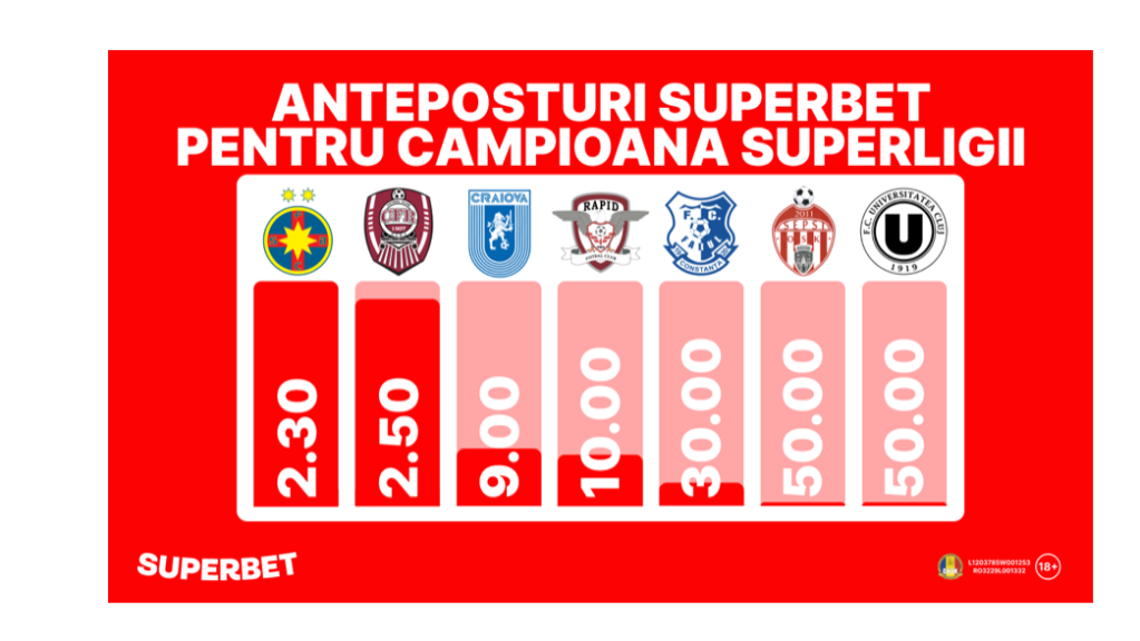 FCSB și CFR, umăr la umăr în lupta la titlu. Vezi primele Cote Superbet pentru câștigătoarea SuperLigii! Pariuri - Publicitate FCSB și CFR, umăr la umăr în lupta la titlu. Vezi primele Cote Superbet pentru câștigătoarea SuperLigii!