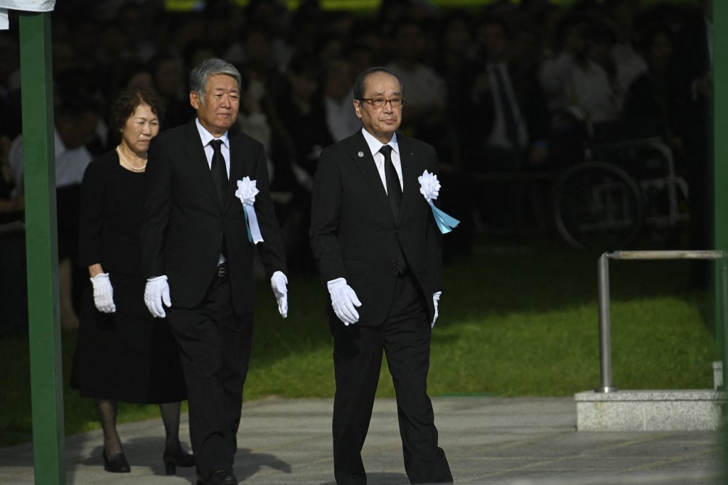 Prim-ministrul japonez Shigeru Ishiba a participat la ceremonie alături de oficiali din întreaga lume și de primarul orașului, Kazumi Matsui.
