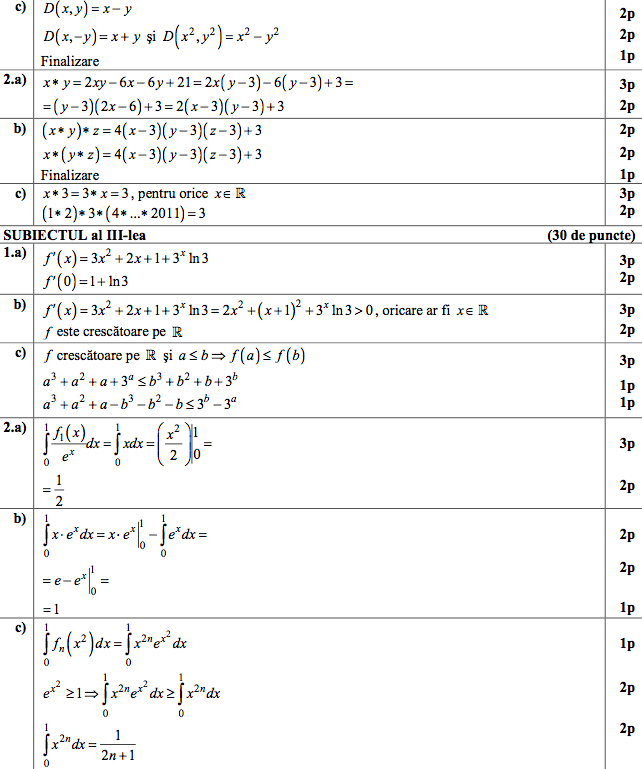 BAC 2011 Sesiunea a II-a Subiectele si baremele integrale de la examenele de Matematica si Istorie