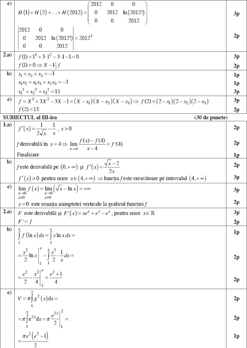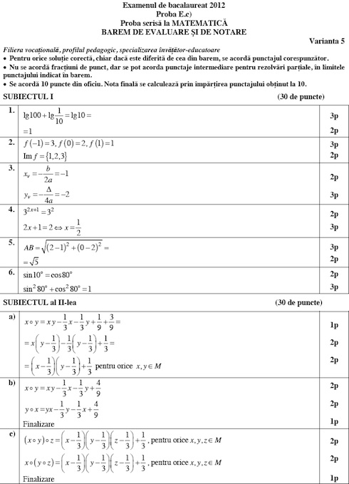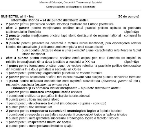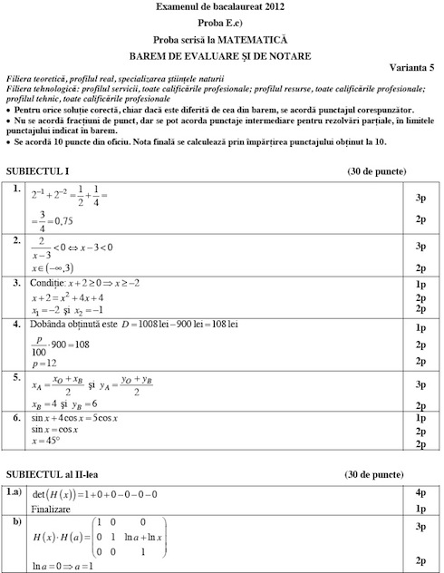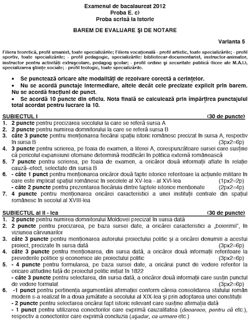 BAC 2012 Baremele de corectare la examenele de Matematica si Istorie