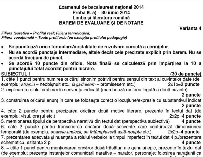 BAC 2014 Baremele si subiectele integrale de la examenul scris de Limba si literatura romana