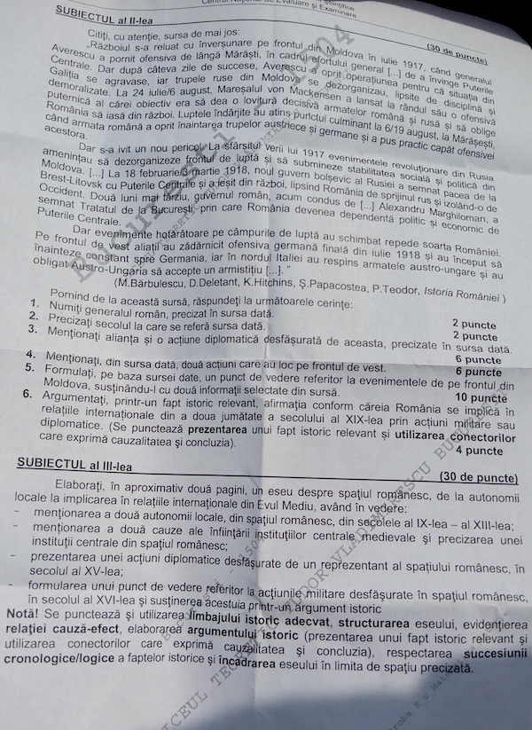 Subiectele de la Istorie