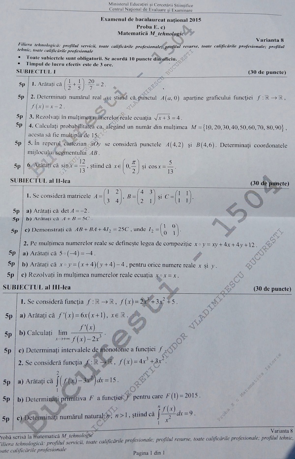 Subiectele de la Matematica – Tehnologic