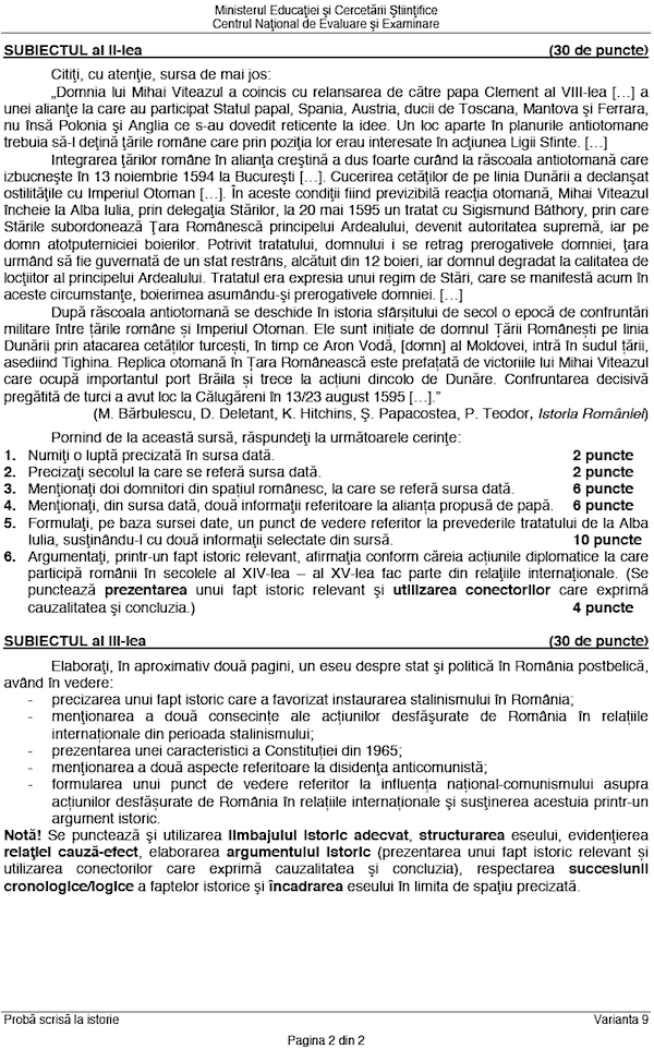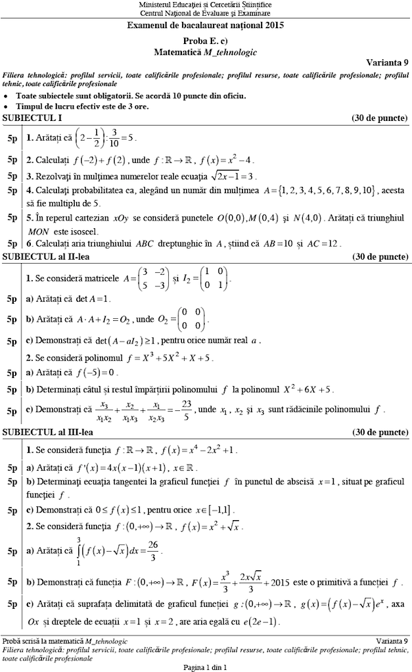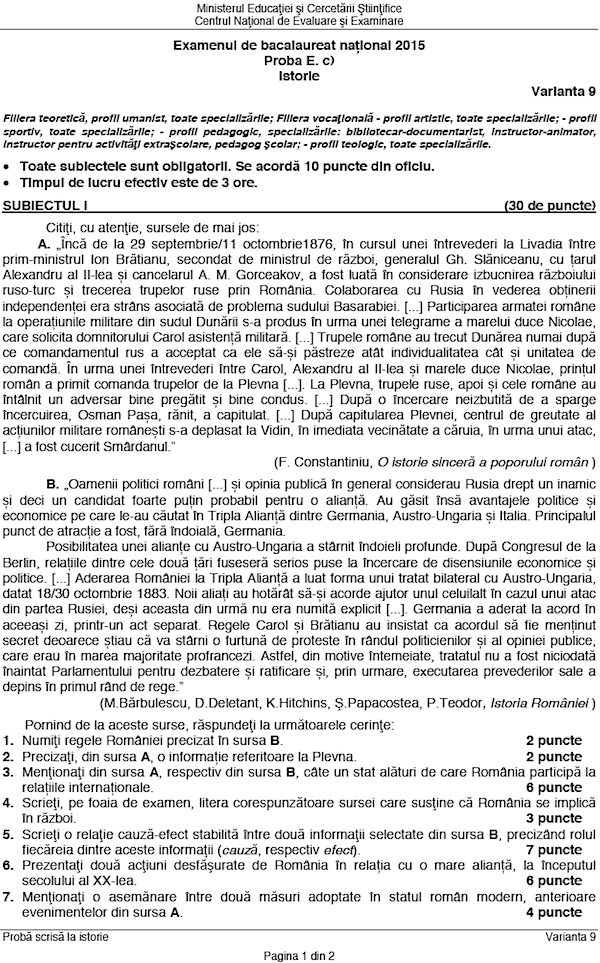 Descarca Subiectele de la Istorie si Matematica – BAC Special 2015:
