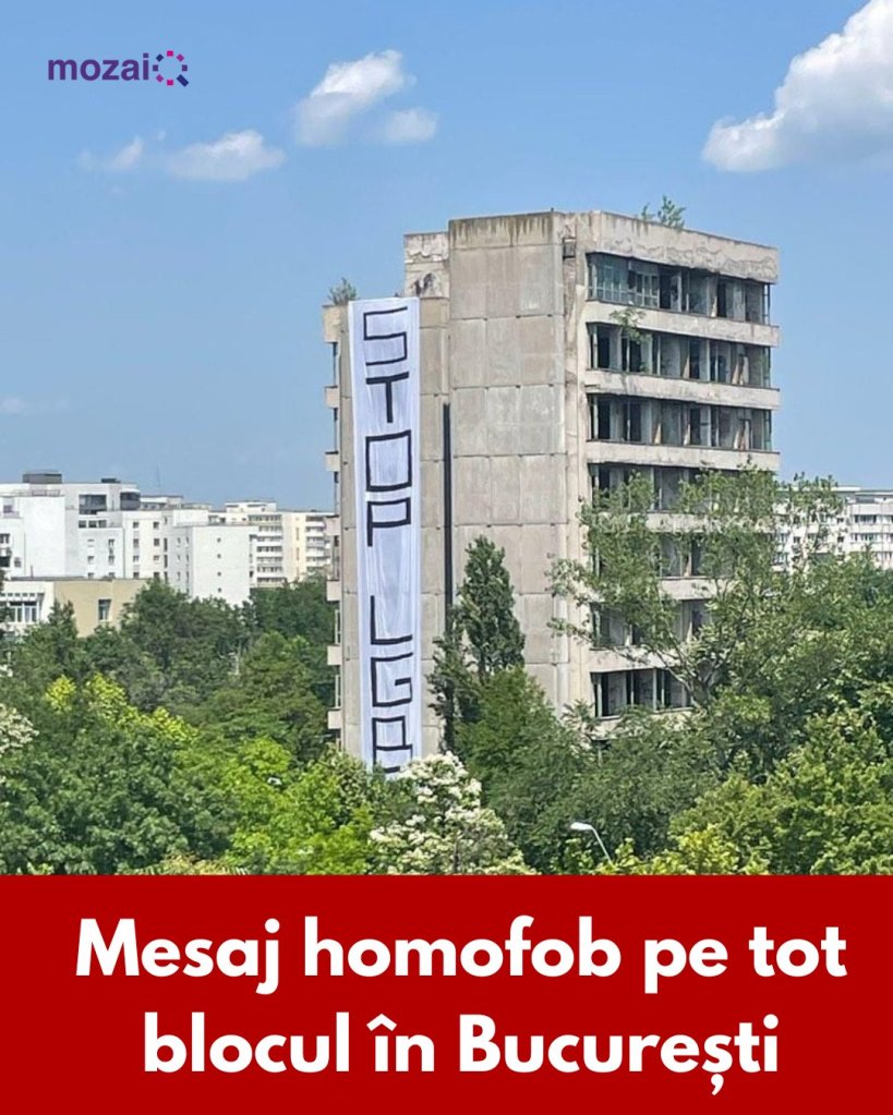 Un banner de mari dimensiuni cu mesaj homofb a fost amplasat pe o clădire abandonată din Capitală, atrage atenția joi asociația MozaiQ, organizație care luptă pentru drepturile persoanelor LGBTI.