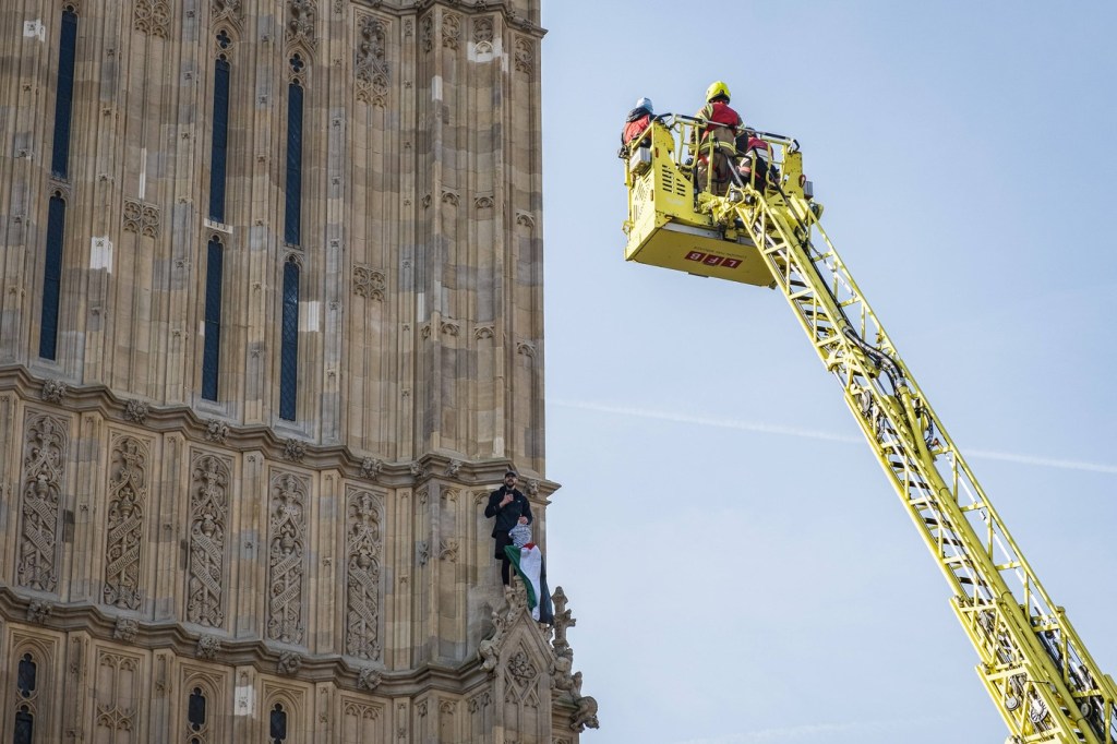 Bărbat arestat după ce s-a urcat pe turnul Big Ben din Londra cu un steag palestinian. A coborât după 16 ore