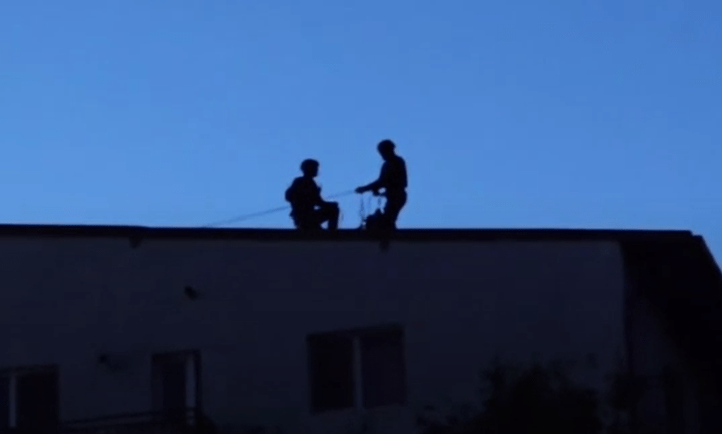 Doi polițiști au coborât în rapel și au pătruns în locuință pe un geam. În același timp, alți luptători de la trupele speciale au spart ușa și au intrat în apartament, iar suspectul a fost încătușat.