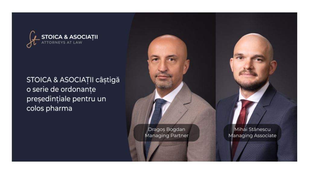 STOICA & ASOCIAȚII câștigă o serie de ordonanțe președințiale pentru un colos pharma Articol susținut de STOICA & ASOCIAȚII STOICA & ASOCIAȚII câștigă o serie de ordonanțe președințiale pentru un colos pharma