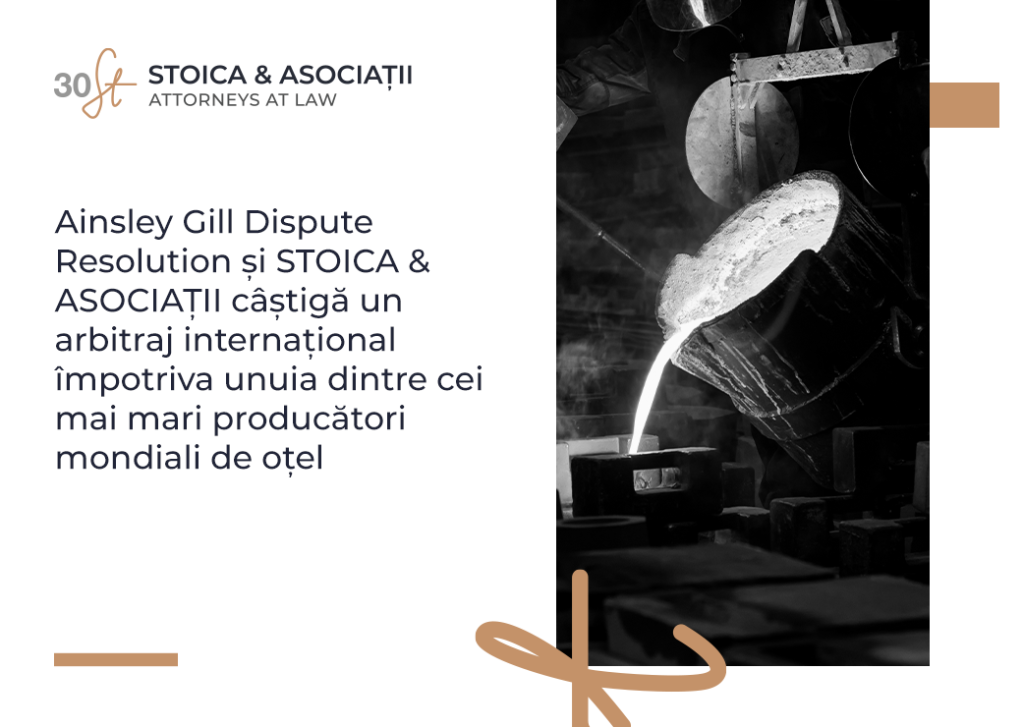 Ainsley Gill Dispute Resolution și STOICA & ASOCIAȚII câștigă un arbitraj internațional împotriva unuia dintre cei mai mari producători mondiali de oțel Articol susținut de STOICA & ASOCIAȚII Ainsley Gill Dispute Resolution și STOICA & ASOCIAȚII câștigă un arbitraj internațional împotriva unuia dintre cei mai mari producători mondiali de oțel