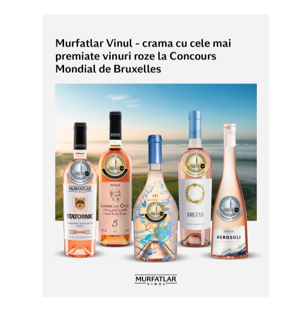 Murfatlar vinul, cea mai premiată cramă la „Concours Mondial de Bruxelles 2025”, sesiunea dedicată vinurilor rosé Articol susținut de Murfatlar Vinul APR. '25 Murfatlar vinul, cea mai premiată cramă la „Concours Mondial de Bruxelles 2025”, sesiunea dedicată vinurilor rosé