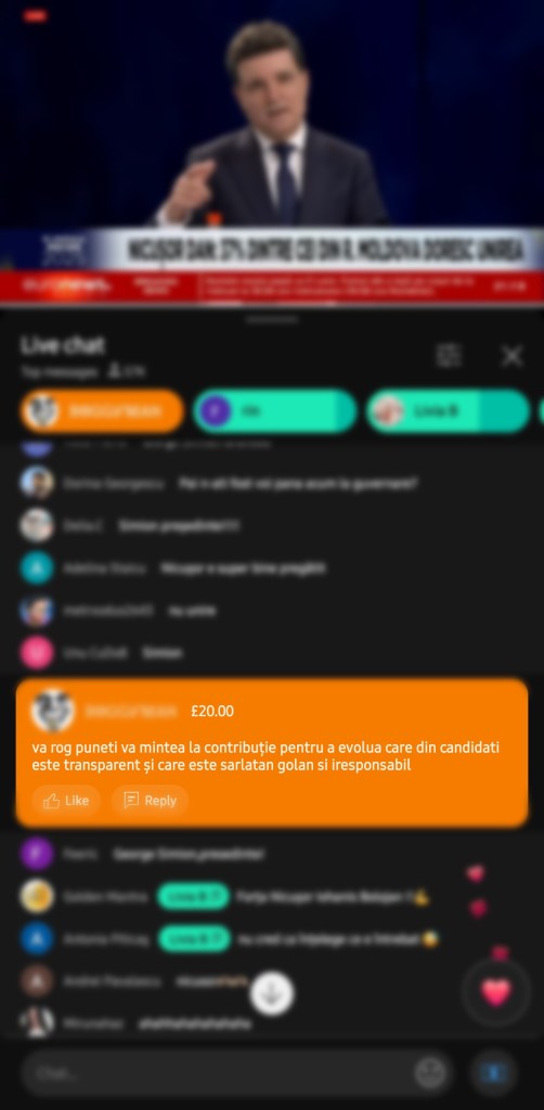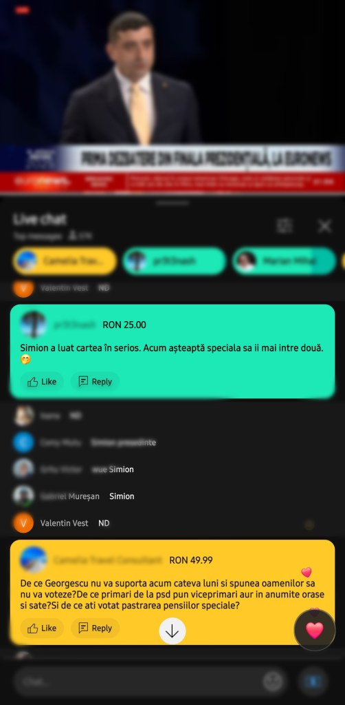 Ca să poată comenta „peste rând” în timpul dezbaterii dintre Nicușor Dan și George Simion, românii au plătit inclusiv în pesos argentinieni