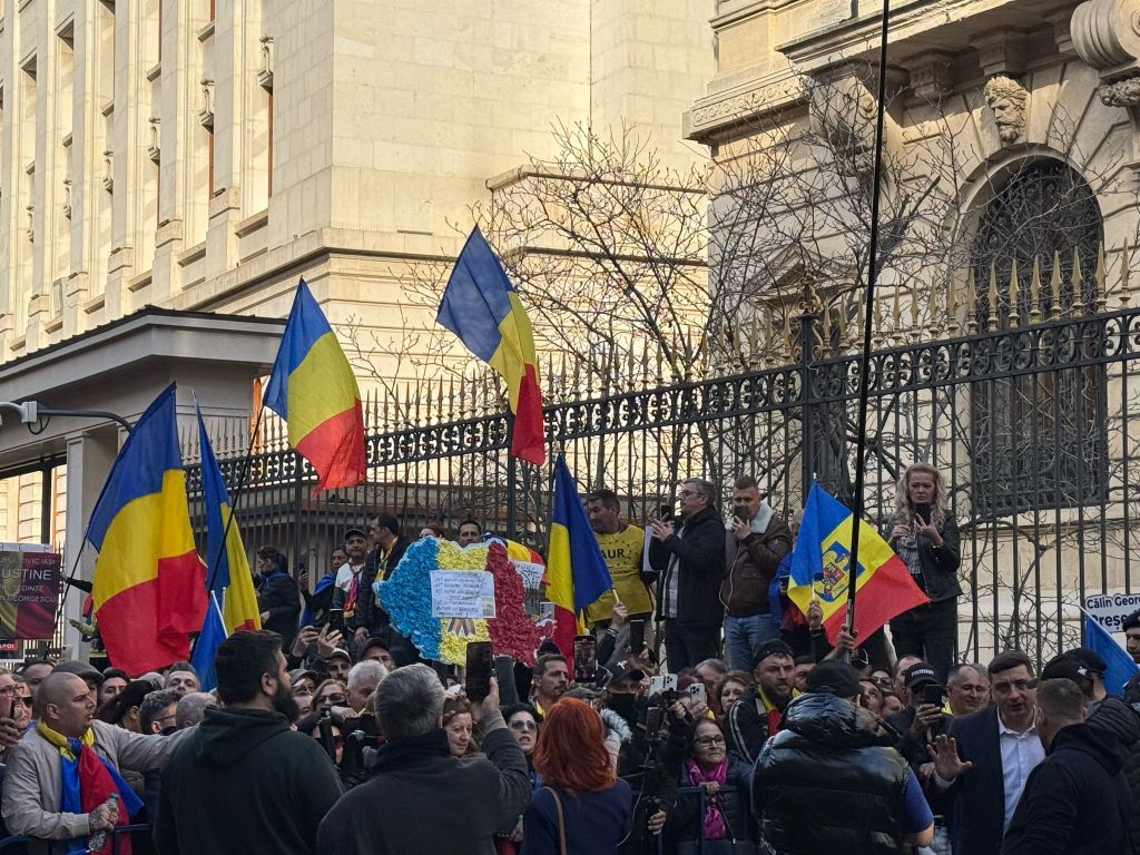 Câteva sute de susținători ai lui Călin Georgescu, cu steaguri tricolore, poze ale candidatului și pancate, s-au strâns în fața sediului Biroului Electoral Central și l-au așteptat pe Călin Georgescu la sosirea la BEC. Ei au creat o busculadă în momentul în care candidatul a sosit, dar și la plecare. Jandarmii, prezenți în număr mare, au luat măsuri de protecție și au instalat garduri pentru a delimita zona în care se află mulțimea. Cu toate acestea, la plecare s-a creat o busculadă din cauza numărului mare de susținători care voiau să ajungă lângă candidat.