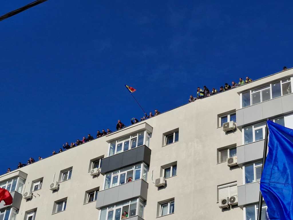 Mai multe persoane s-au urcat pe un bloc de lângă Palatul Copiilor pentru a filma.