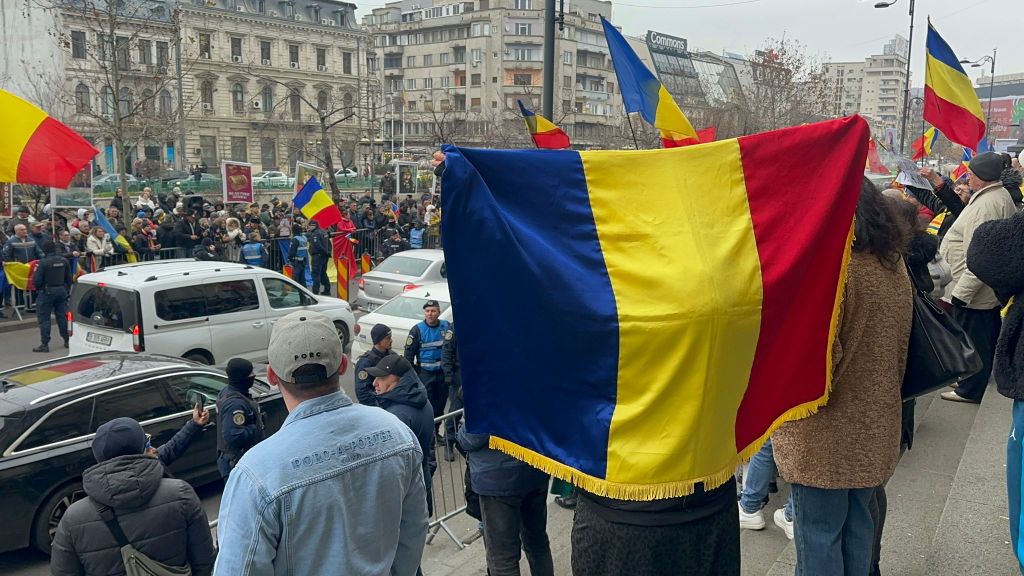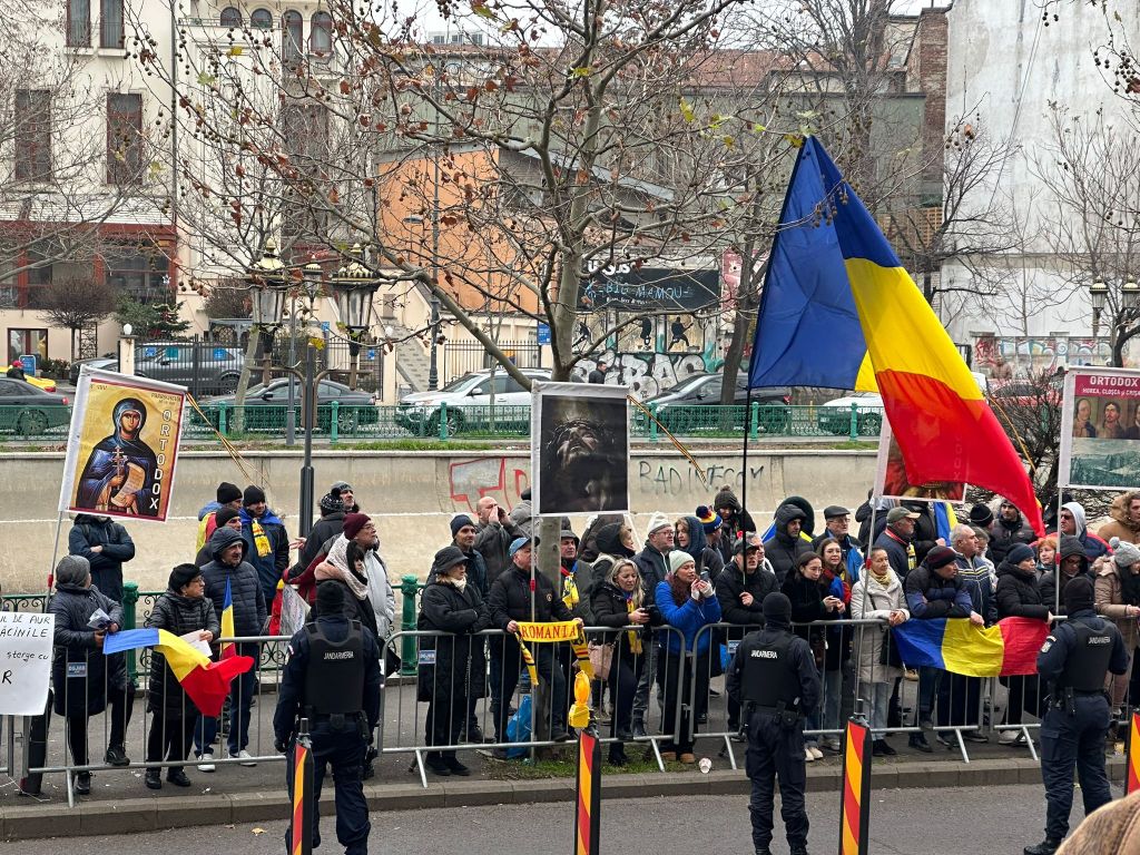 „Să plece hoții, să vină patrioții”, mai strigă susținătorii lui Călin Georgescu.