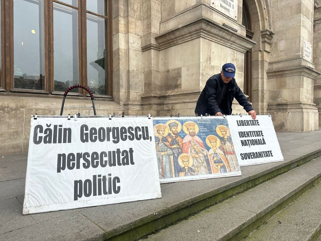 Câteva zeci de persoane s-au adunat deja pe treptele din fața Curții de Apel București și pe trotuarul de vizavi, în așteptarea lui Călin Georgescu. Aceștia scandează „Călin Georgescu este președinte” și-i cer demisia ministrului de Interne Cătălin Predoiu și președintelui Nicușor Dan.