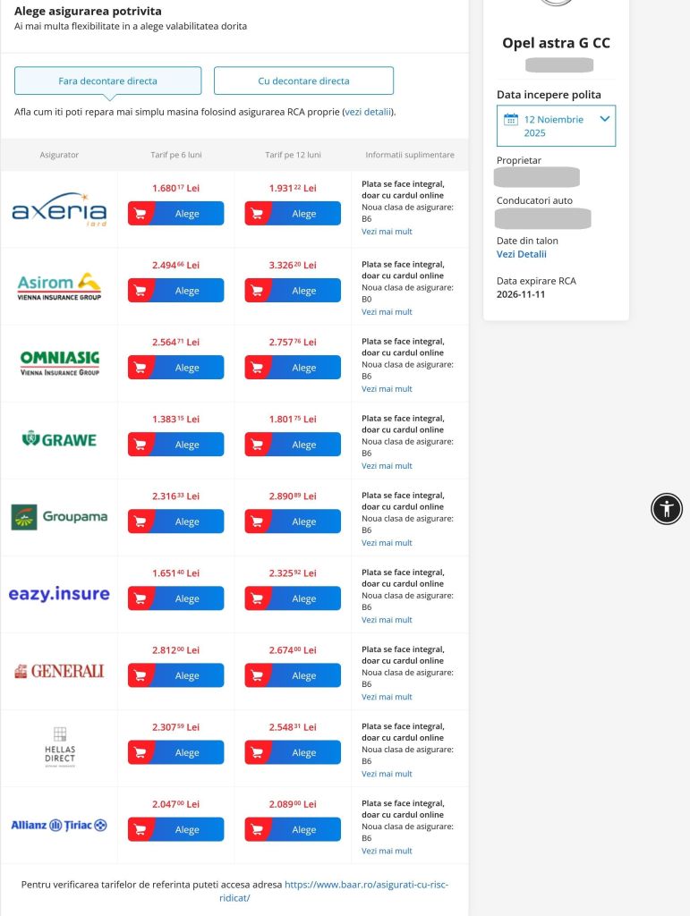 Mai exact, anul trecut acesta a plătit 1438 de lei pentru asigurarea RCA pe 12 luni, fără decontare directă a unei mașini Opel Astra G din 2006, tot pe motorină, cu o capacitate de 1686 cm3 și putere de 59 KW.