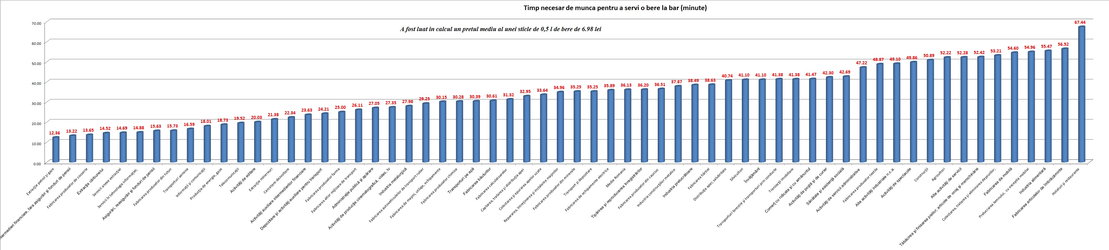 Cate minute muncesc romanii ca sa poata bea o bere? Petrolistii si bancherii, sub un sfert de ora. Angajatii hotelurilor, peste o ora. Vezi si distributia pe judete a timpului de munca minim necesar pentru a-ti lua o bere