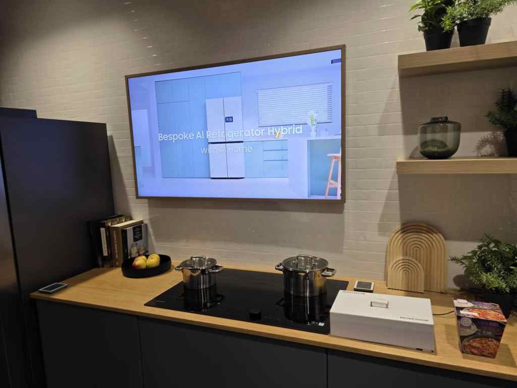 Punctul central al ecosistemului Samsung e AI Home, un ecran control central care poate fi pe frigider, pe televizor sau chiar pe telefonul și tableta ta, ca să ai acces mereu la tot ce se întâmplă la tine acasă. De asemenea, poți interacționa cu el și prin comenzi vocale.