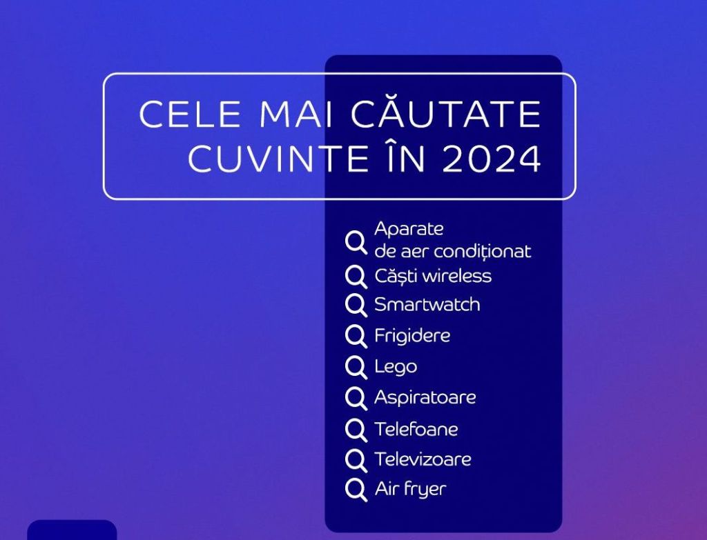 Ce au căutat românii pe eMAG în 2024 – De la aparate de aer condiționat și căști wireless, până la „nu îmi place cum funcționează” și „rochie de mireasă falsă”