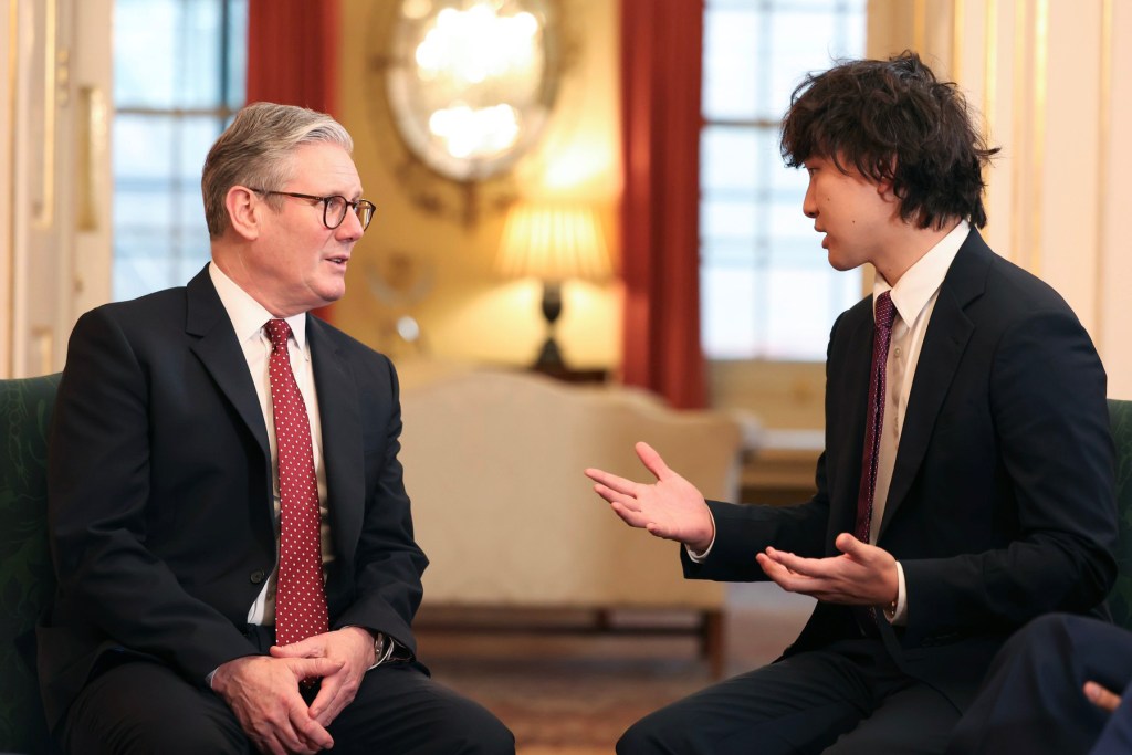 Alexandr Wang în timpul unei întrevederi cu premierul britanic Sir Keir Starmer, care l-a primit la reședința sa de pe 10 Downing Street în luna februarie a acestui an. Cercetătorul-antreprenor are 28 de ani, FOTO: Simon Dawson / Avalon / Profimedia Images