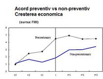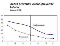 Calculele FMI arata ca in cazul unui program non-precautionary in medie, creşterea producţiei a fost lentă timp de trei ani înainte de începerea lui, apoi de circa 2 la sută în primul an de program, şi ridicându-se la 3 la sută pe an, ulterior. Rata inflaţiei iniţială, de asemenea, tinde să fie mai favorabila pentru programele de tip preventiv.