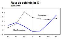 Rata de schimb reală, de asemenea, se depreciază (relativ la tendinţa pe termen lung) şi Rezervele internaţionale brute (ca o proporţie a datoriei pe termen scurt) sunt în scădere,